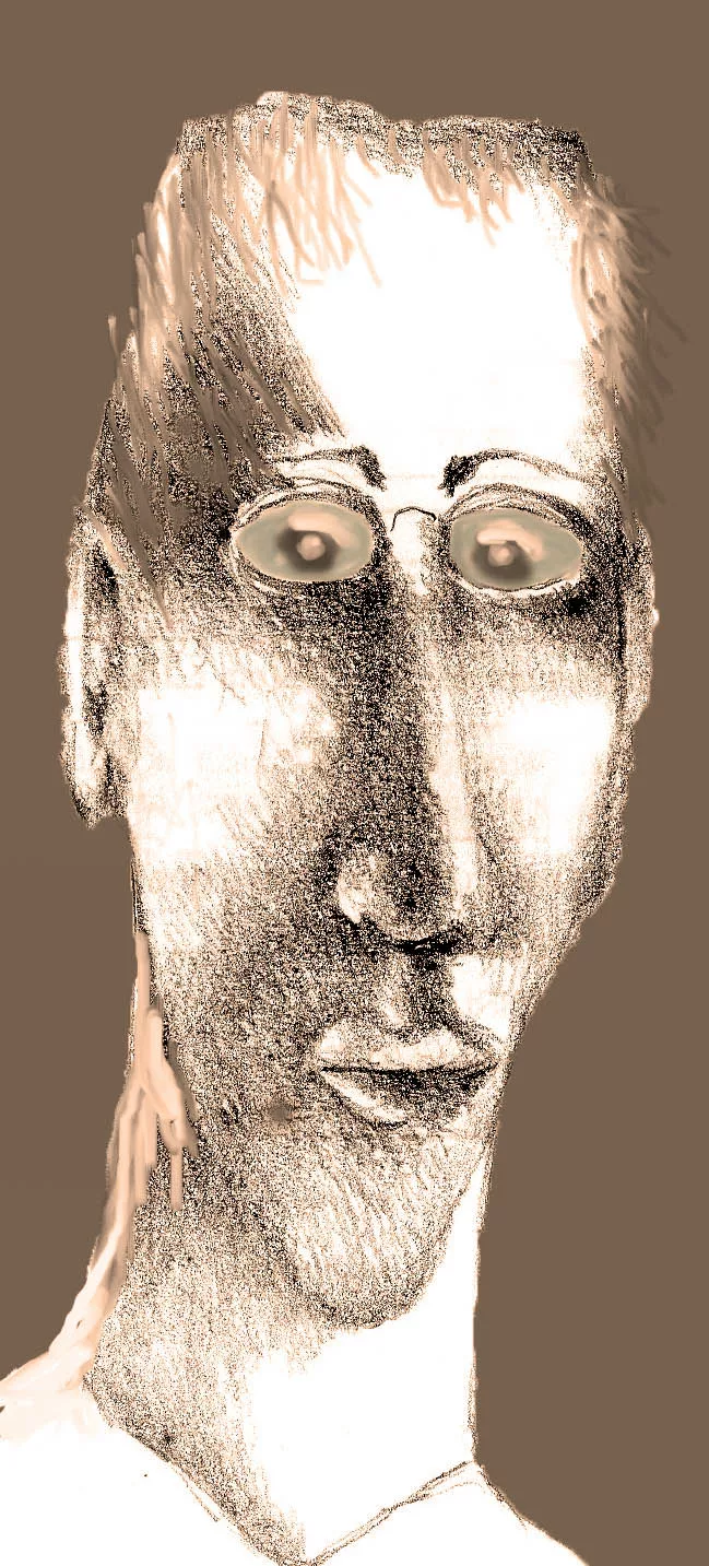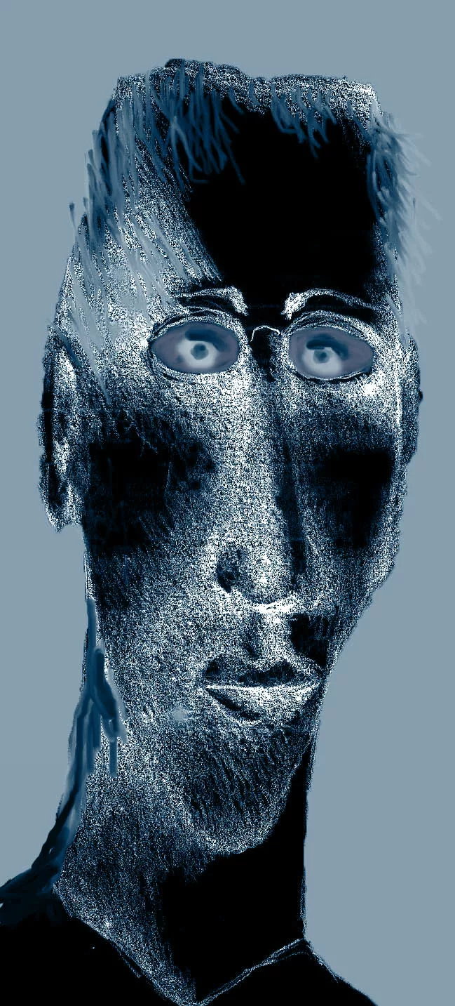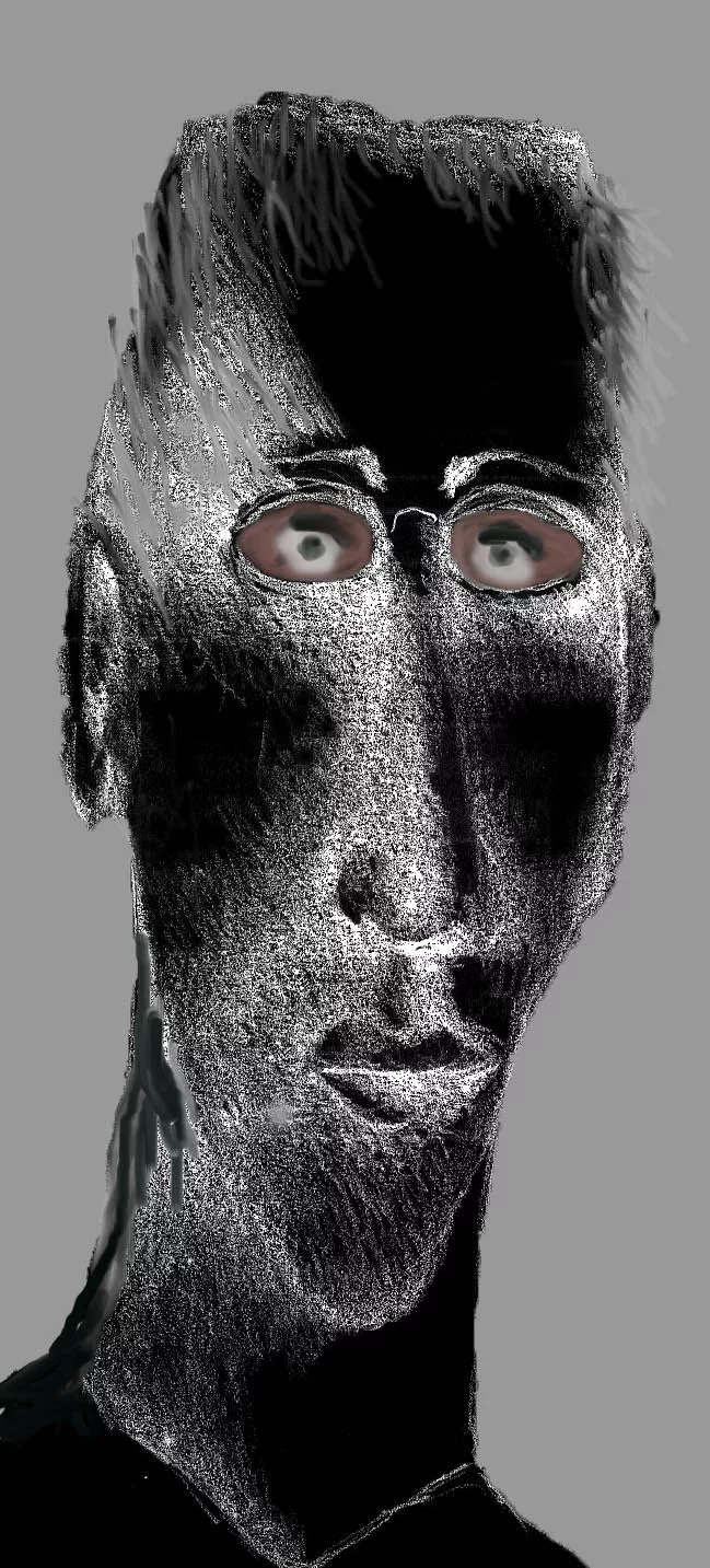 Autoportraits réalisés avec le logiciel Krita et des filtres du logiciel Photoshop. Masque de fusion, écrêtage et jeux de lumière, contraste et couleurs.